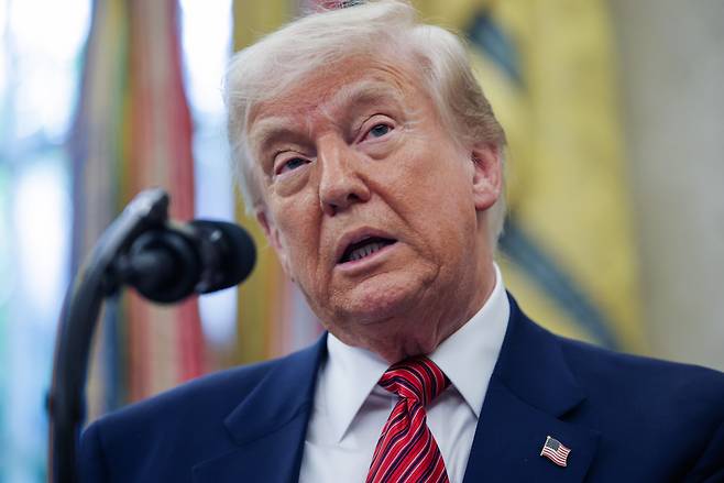 트럼프 대통령은 7일(현지시간) 백악관에서 열린 데이비드 퍼듀 주중 미 대사 선서식 행사를 마친 뒤 ‘중국을 협상장으로 끌어내기 위해 (중국에 대한) 145% 관세를 철회할 용의가 있느냐’는 취재진 물음에 “없다”고 답했다.