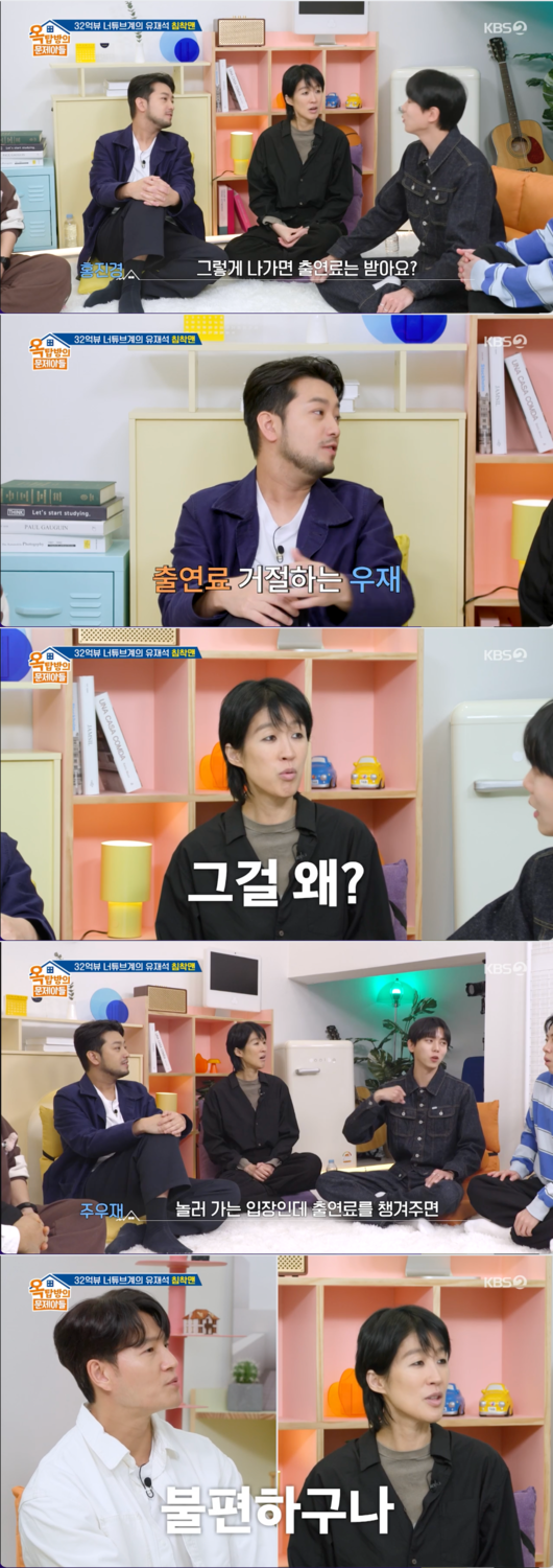 주우재는 출연료를 거절한다고 밝혔다. 주우재는 “놀러 가는 입장인데 출연료를 챙겨주면 놀러 가고 싶은데 나 놀러 가도 디냐고 할 때 (갈 수가 없다)”라고 전해 눈길을 끌었다.