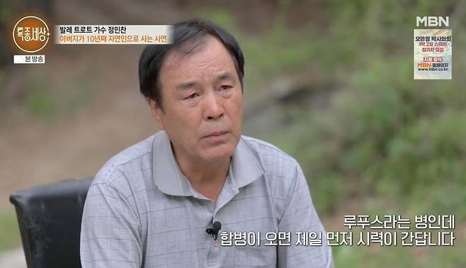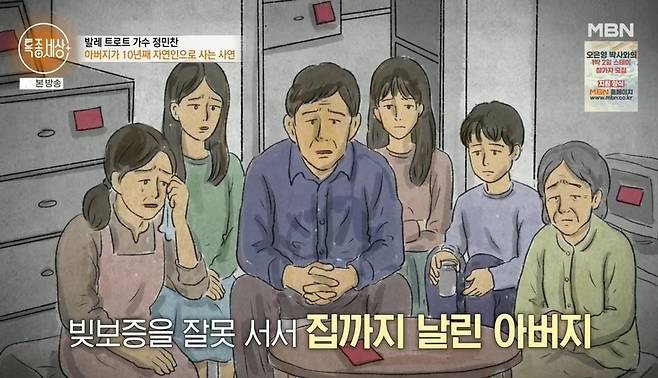 이날 산속에서 발성 연습을 하고 남자가 등장했다. '발레 트로트' 창시자 정민찬이었다. 정민찬은 "트로트 경연 프로그램에서 '발레 트로트'를 창시하고 방송 활동을 1년간 꾸준히 했는데, 그 이후로 방송이 많이 끊겼다. 지금은 사실 많이 안 좋은 상황"이라고 고백했다.