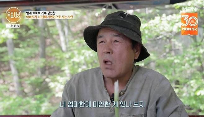 산속 자연인으로 변신했다는 정민찬은 "아버지가 혼자 사시는 곳인데, 외로울까봐 같이 와 있다"고 밝혔다. 국립발레단 출신의 발레리노였던 정민찬은 트로트 가수로 전향한 이유에 대해 "부모님도 왜 갑자기 발레를 그만두고 트로트를 했냐고 하셨다. 아무래도 발레가 전공이다 보니 발레를 대중화시켜 보자고 생각했다. 제가 좋아하는 노래를 같이 부르고, 여러 가지를 보여줄 수 있다고 생각했다"라고 밝혔다.