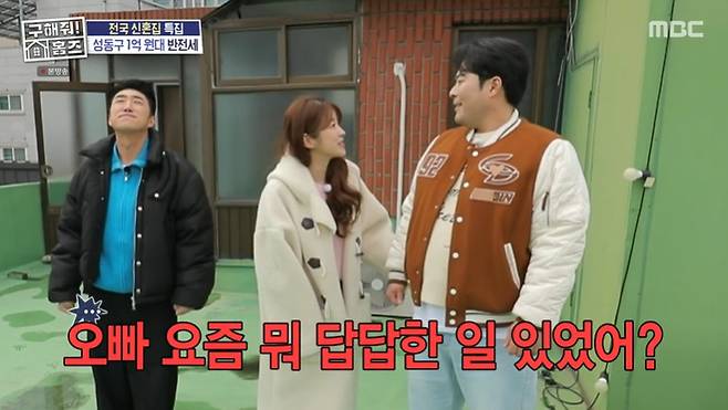 신혼부부 다용도실로 적절한 널찍한 방과 침대 2개도 거뜬히 들어가는 방에 이어 거실에 버금가는 넓이를 자랑하는 방, 그리고 복층에 존재하는 단독 옥상 공간에 김해준이 "시원하게 여기 나와서 싹 보고"라며 부러움을 감추지 못하자 김승혜는 "요즘 답답한 일 있냐"고 물었다.