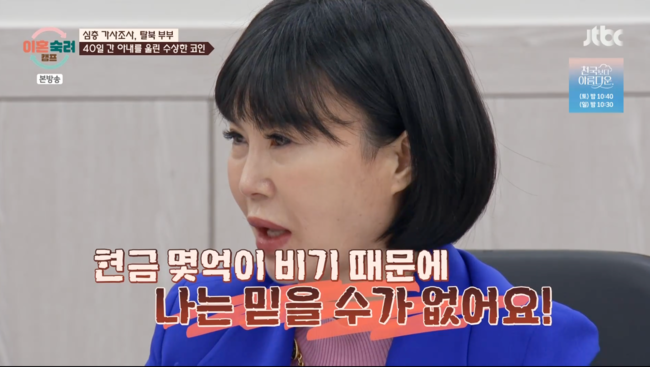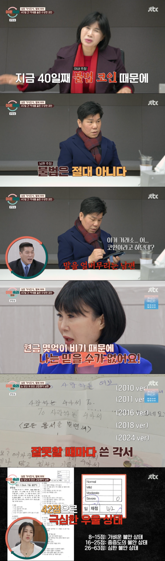 40일째 매일 싸우고 있다는 아내는 남편의 불법 코인 문제를 언급했다.
