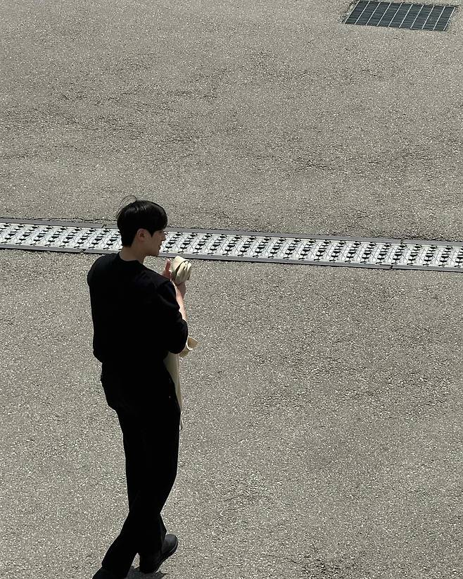 사진 속에는 올블랙에 연한 노란 빛깔의 재킷을 걸친 김윤재가 풍경을 감상하고 거리를 거닐고 있는 모습들이 담겨 있다. 봄 분위기가 물씬 풍기는 화사한 분위기와 옅은 미소가 시선을 사로잡는다.