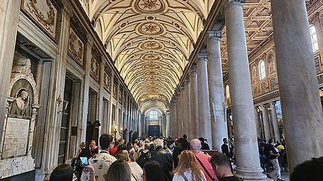 ▲ 이탈리아 로마 시내 산타 마리아 마조레 대성전 찾은 프란치스코 교황 참배객들