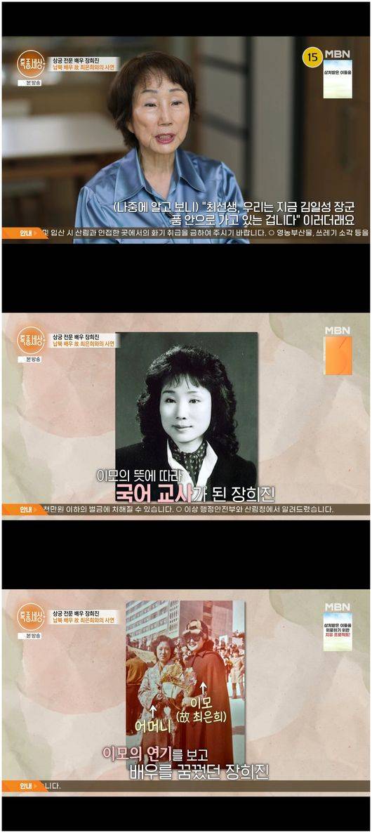 8일 방영한 MBN ‘특종세상’에서는 故 최은희를 따라 배우가 된 장희진의 인생이 소개됐다.
