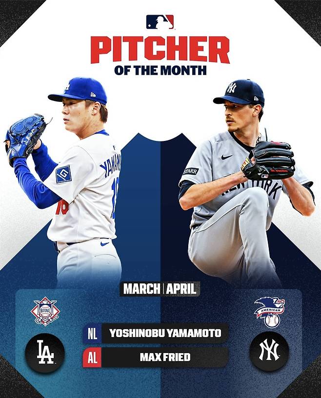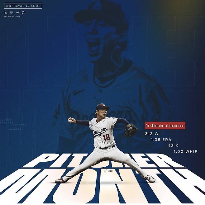 | ▲ 4월의 투수로 선정된 LA 다저스 야마모토 요시노부 (출처: 메이저리그 공식 SNS) |