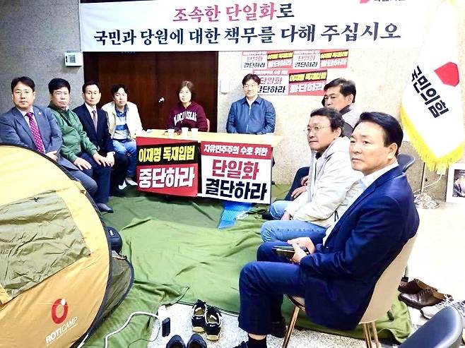 권성동 국민의힘 원내대표를 비롯한 상임고문단은 지난 7일 국회에서 김문수 후보에게 단일화를 촉구하며 단식농성에 돌입했다.