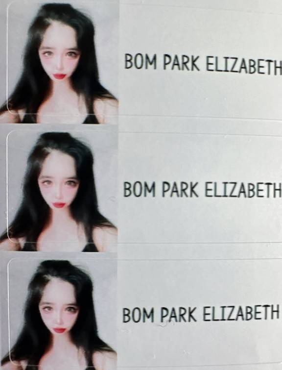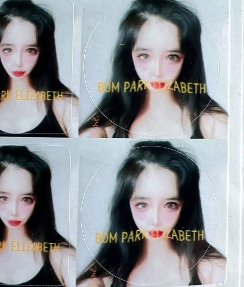 사진에는 박봄의 얼굴과 이름이 프린팅 된 스티커가 담겼다. 박봄의 또렷하고 큼지막한 이목구비가 돋보이는 가운데, AI를 연상케 하는 턱선이 눈길을 끈다.