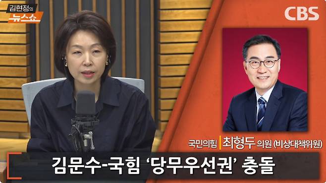 ◆ 최형두> 그건 당원 투표였죠. 당원 투표를 통해서. 그러니까 우리가 헌법에서 모든 주권은 국민에서 나온다고 그랬지 않습니까? 그런 모든 당권, 모든 후보라든가 이건 당원으로부터 나오고 또 우리가 경선 과정에서 당원뿐 아니라 국민의 뜻을 물었습니다만 한 공당의 후보 또 당무 우선권이라는 것도 당원으로부터 나오는 거 아니겠습니까? 그런 판단에서 하는 것이고 저는 우리 김문수 후보께서 우리 경선으로 뽑힌 후보인 만큼 이런 1대1 최종 결정에서도 굉장히 유리한 지위에서 스스로의 약속을, 공약을 아주 속도감 있게 멋지게 이행할 수 있는 방법도 있는데 여러 가지 아쉽습니다. 그러나 아직까지 우리가 예단할 필요는 없고요. 마지막까지 어떤 좋은 결론이 나올 수 있을 것으로 저희들이 노력하고 또 그렇게 만드는 것이 정치 아니겠습니까? 그런 정치를 해야 국민들의 기대를 다시 모으고 그런 정치를 해야 국민들의 선택도 받지 않겠습니까?