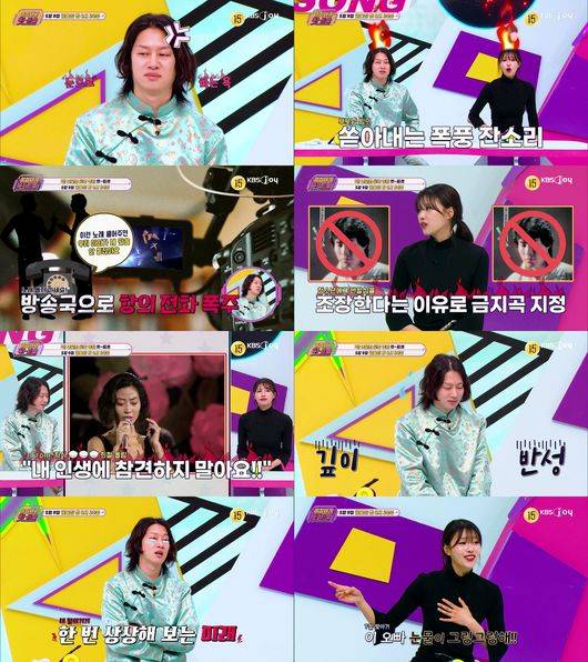 당시 가요톱텐 4주 연속 1위를 기록할 정도로 인기를 끌었던 이 곡에 대해, 김희철은 “이런 노래를 들으면 아이가 내 말을 듣지 않는다며, 이 노래 틀지 말라고 방송국에 항의 전화가 빗발쳤다”라고 설명한다. 이미주 또한 “청소년에게 반발심을 일으킨다는 이유로 금지곡으로 지정됐다”라고 덧붙인다.