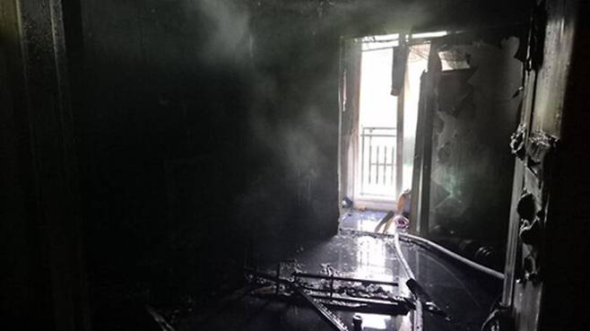 오늘(9일) 오전 7시 16분 광주 북구 두암동 한 아파트 12층에서 불이 났습니다.