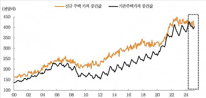 최근 Forbes에서는 2025년 주택가격 전망과 관련된 기사를 발표했다(“Housing Market Predictions for 2025: When Will Home Prices Drop?”, 4/7). 기사에서는 여전히 높은 모기지 금리와 주택가격 등으로 인해 주택 수요 개선이 제한적이라고 평가했다. 또 관세로 인한 건설업체 비용 상승이 예상되는 국면에서 주택 공급도 크게 증가하지 않을 가능성이 높다고 예측했다. 주택 공급이 완만하게 증가하고 수요 부진이 장기화할 경우 주택가격 안정 흐름은 유효하다고 판단한다.