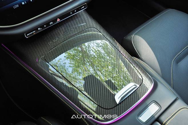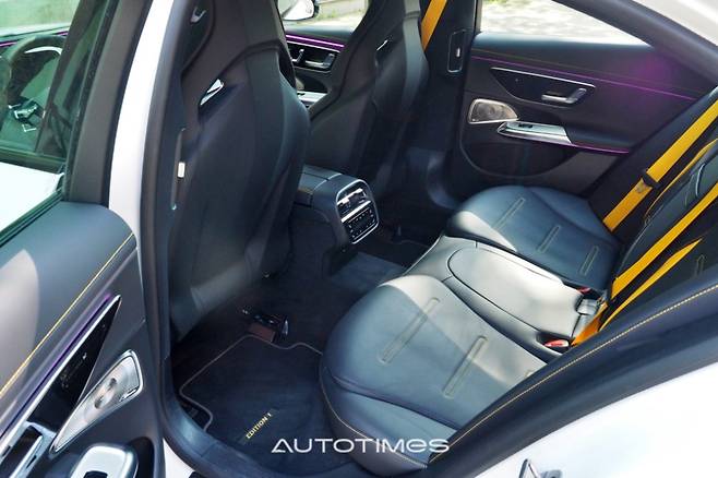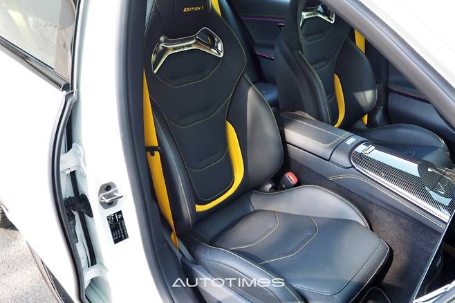 에디션 1만의 특징을 살펴보면 먼저, 센터터널에 전용 레터링을 세겨 넣었고 AMG 나파 가죽으로 제작한 AMG 스포츠 시트에도 헤드레스트와 등받이에 AMG앰블럼 및 로고, 에디션 1 자수를 더했다. 노란색 안전벨트 및 스티치로 포인트를 준 부분도 마음에 든다. 간단한 조작으로 주요 주행 기능과 프로그램을 제어하는 AMG 퍼포먼스 스티어링 휠 역시 타공과 나파 가죽 소재로 감쌌다.