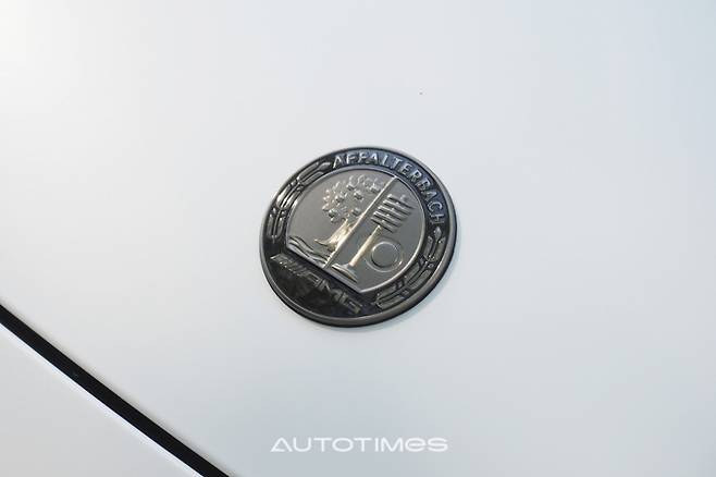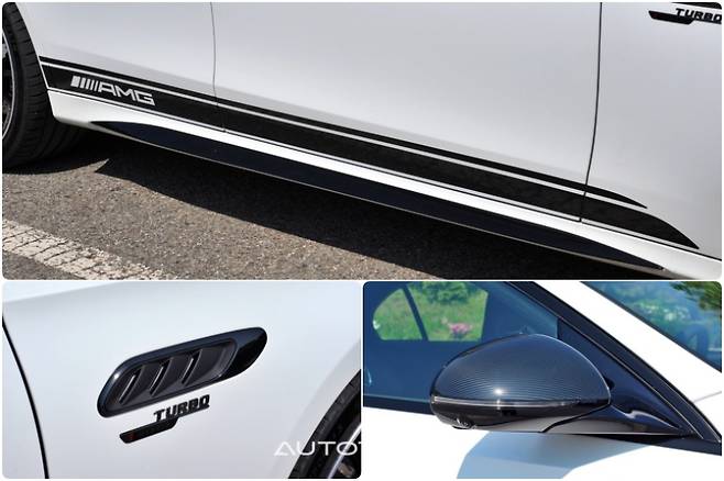 AMG 전용 사이드실 패널과 무광 블랙 색상의 21인치 AMG 크로스 스포크 단조 휠이 장착됐으며 휠에도 “Edition 1”, “AMG” 레터링을 더했다. 살이 얇고 촘촘하며 센터락 방식으로 더욱 특별하다. 이와 함께 외장 색상으로 마누팍투어 오팔라이트 화이트 마그노 컬러를 칠했다. 무광임에도 빛 반사에 따라 펄이 반짝이게 빛나는데 매우 오묘하고 신비롭다. 이 외에도 앞바퀴 뒤에는 별도의 장식과 차의 성격을 나타낼 수 있는 뱃지도 붙였다.