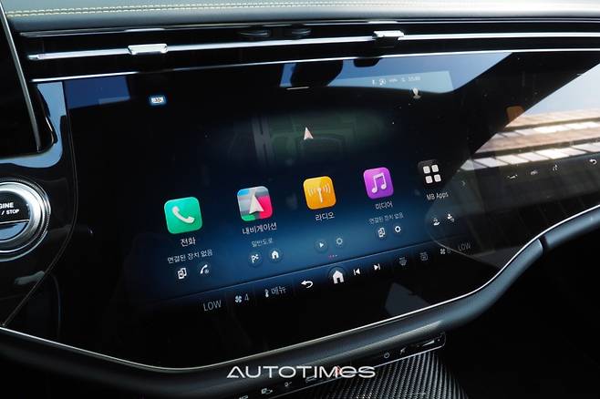 실내는 단연 MBUX 슈퍼 스크린이 압도적으로 다가온다. 매우 커다란 센터페시아 모니터와 함께 조수석에는 별도의 화면까지 넣어 개방감이 상당하다. 또 가장 최신 소프트웨어까지 넣어 편의성을 키웠다. 아이콘 크기가 큼직해 주행 중에도 전혀 문제가 없으며 유튜브, 에센셜과 같은 최신 트렌드를 맞춘 기능도 기본 제공한다. 또 T맵 네비게이션 시스템을 순정으로 탑재했기 때문에 경쟁력이 높다.