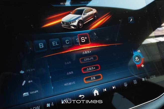AMG 특유의 고속 안정성까지 더해져 차와 오랜 시간 함께 할수록 큰 강점으로 다가온다. 이 상황에서 조금 더 욕심을 부려 극강의 하드코어 상황을 만들고 싶다면 스포츠 플러스로 두면 된다. 구동계부터 섀시컨트롤, 사운드 등 차를 다루는 모든 영역이 날카롭게 변한다. 스로틀을 열자마자 거침 없이 튀어 나가고 무지막지하게 속도를 올린다.
