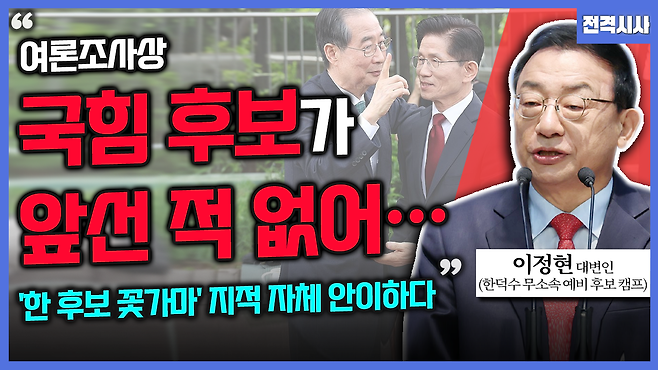 [전격시사] 이정현 무소속 한덕수 예비 후보 캠프 대변인 - “여론조사상 국힘 후보가 앞선 적 없어…‘한 후보 꽃가마’ 지적 자체 안이하다”