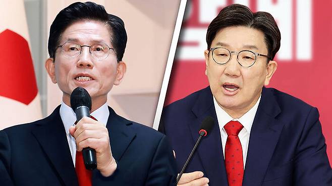 김재원 후보 비서실장은 라디오에서 "기호 2번을 무소속 후보를 불러들여 줘야 한다는 당 지도부의 주장이 정상인가"라며 "당규에는 후보 교체에 대한 근거 자체가 없다. 절대로 가능한 사안이 아니다"라고 주장했습니다.