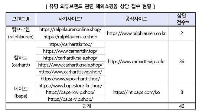 랄프로렌, 칼하트 등 유명 의류브랜드를 사칭한 해외쇼핑몰에 대해 당국이 각별한 주의를 당부했다.