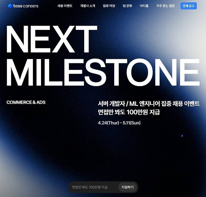 "면접 1번 보면 100만원"…1천명 뽑는 토스, 파격 공고