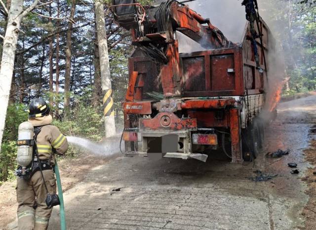 9일 경북소방본부에 따르면 지난 8일 오후 3시6분쯤 경북 영덕군 칠보산 임도를 올라가던 5t 집게차 엔진 부분에서 화재가 발생, 40분만에 진화됐다.