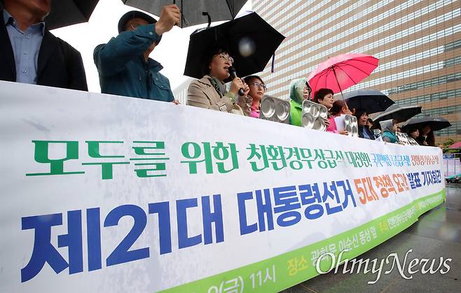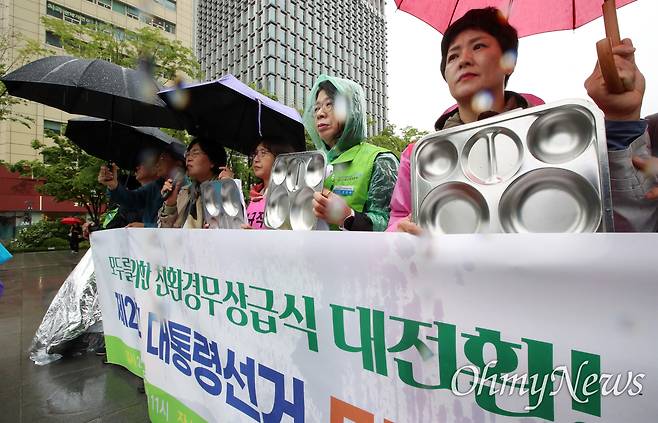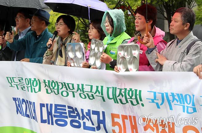 | ▲ [오마이포토] 모두를 위한 친환경무상급식 대전환! 대선 5대 정책 요구안 발표! |