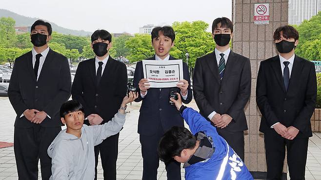 의대생 대표 단체인 대한의과대학·의학전문대학원 학생협회는 오늘(9일) 오전 경기 과천 공수처 앞에서 기자회견을 열고 고발장을 접수했습니다.