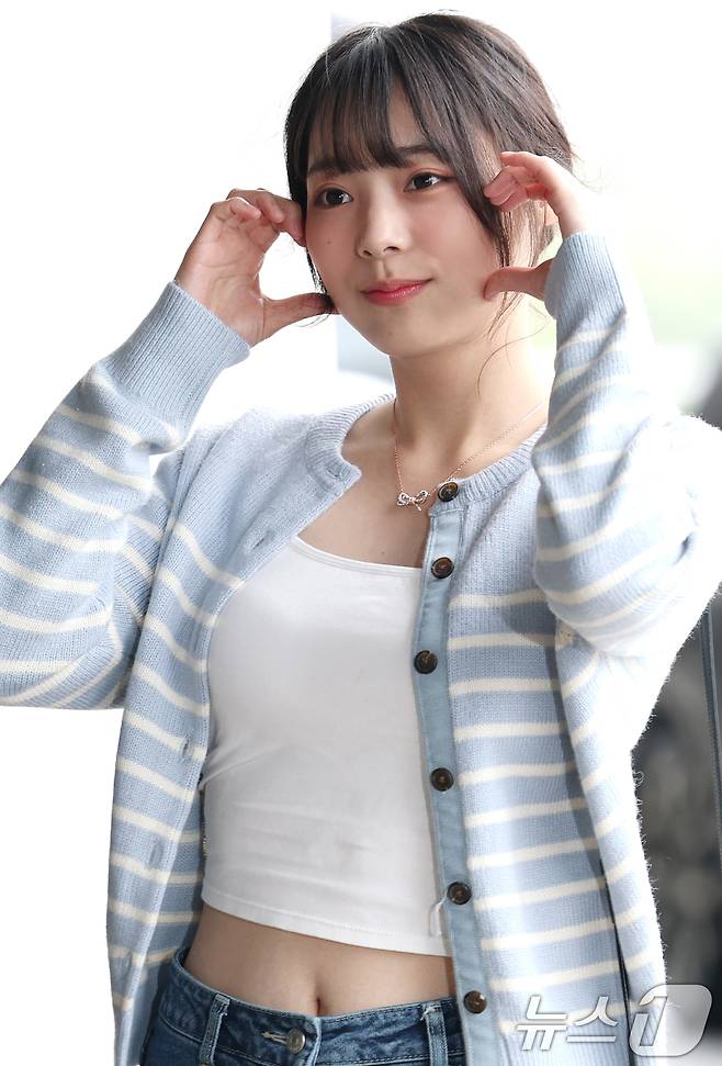 (김포공항=뉴스1) 권현진 기자 = QWER의 시연이 해외 일정을 위해 9일 김포국제공항을 통해 일본으로 출국하기 전 인사를 하고 있다. 2025.5.9/뉴스1