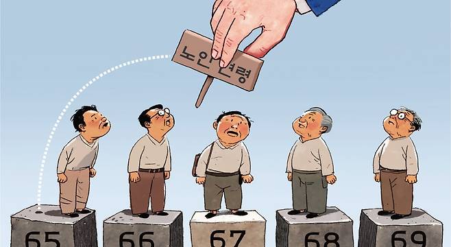 전문가들은 “노인 기준 연령을 단계적으로 70세까지 상향해야 한다”며 “2년에 한 살씩 높여 2035년 70세로 노인 연령을 상향하는 방안을 제안한다”고 했다. 이와 함께 건강 수준, 경제·사회 활동 및 빈곤율 등을 고려해 5년마다 주기적으로 검토하고 조정해야 한다고 덧붙였다.