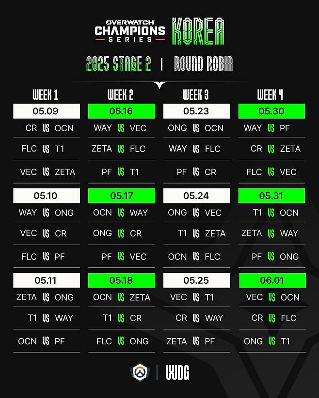 개방형 글로벌 e스포츠 대회인 '2025 오버워치 챔피언스 시리즈 코리아'(이하 OWCS 코리아)의 스테이지 2가 서울 홍대에 위치한 WDG 스튜디오에서 9일 개막한다.