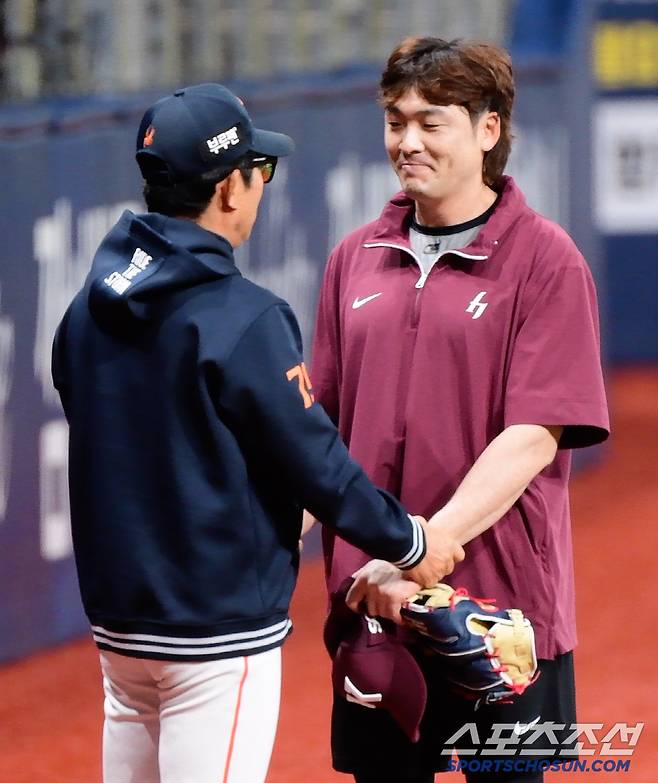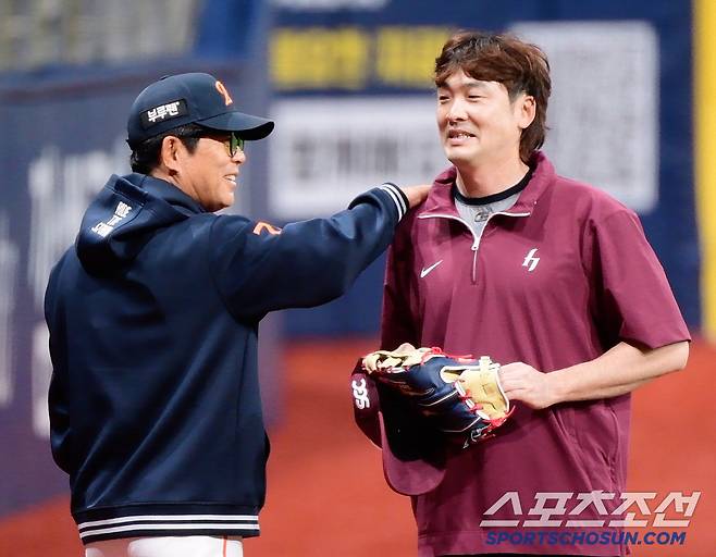 '인자함의 아이콘' 양상문 코치, 버건디 유니폼 입고 달려온 선수 [고척 현장]