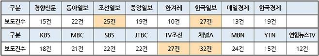 | ▲ 방송사 저녁종합뉴스·신문 지면 ‘이재명 후보 선거법 사건 대법원 파기환송심’ 보도건수(5/1~5/3) |