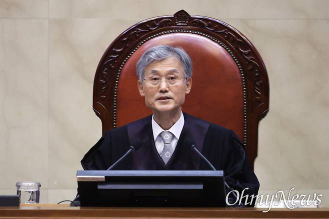 | ▲ 조희대 대법원장이 1일 오후 더불어민주당 이재명 대선 후보의 공직선거법 사건 전원합의체 선고를 위해 서울 서초구 대법원 대법정에 입장해 장내 정돈을 선언하고 있다. |