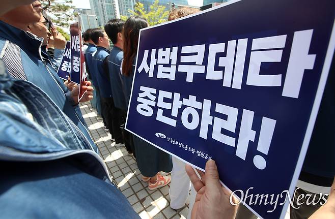 | ▲ 헌법 제1조 위반 조희대 대법원장 사퇴촉구 전국공무원노조 법원본부 노동자들이 8일 오전 서울 서초구 대법원 앞에서 '헌법 제1조 위반 조희대 대법원장 사퇴촉구 기자회견'을 열어 "국민주권 찬탈한 조 대법원장은 즉각 사퇴할 것"을 촉구하고 있다. |