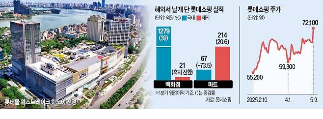 롯데 관계자는 “백화점, 마트, 영화관, 호텔 등이 어우러진 대규모 복합시설 롯데몰 웨스트레이크 하노이가 가파르게 실적이 개선되고 있다”며 “하노이 경제가 급성장하는데 시민들이 즐길 만한 대규모 유통·상업시설이 없는 점을 공략한 게 주효했다”고 말했다.
