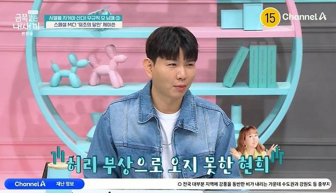 9일 방송된 채널A '요즘 육아-금쪽같은 내 새끼'에서는 허리 부상으로 자리를 비운 홍현희를 대신해 남편 제이쓴이 스페셜 MC로 출연했다.