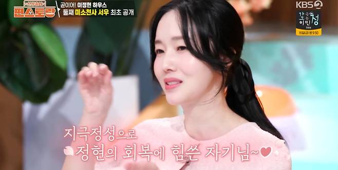 이날 이정현은 "아기 낳고 산후조리 잘하고 나왔다. 살도 빨리 뺐다"며 빠르게 건강을 회복한 비법을 공개했다.