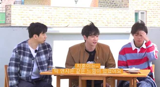 서로의 첫인상에 대한 토크가 펼쳐진 가운데 이준영은 유수빈에 대해 “수빈이 형은 저랑 9년 전에 작업을 한 적이 있다. 주말 드라마를 같이 한 적이 있다. 한창 연기를 열심히 해야겠다는 열정이 넘쳤던 시기라 ‘약한 영웅’ 때문에 다시 조우하게 됐을 때는 여유있어 진 느낌이 들었다”라고 밝혔다. 이어 박지훈의 첫인상에 대해서는 “딱 처음 봤을 때부터 연시은 같은 느낌이 있었다. 뭔가 좀 조용하고 말을 쉽게 못 걸었던 것 같다”라고 떠올렸다.