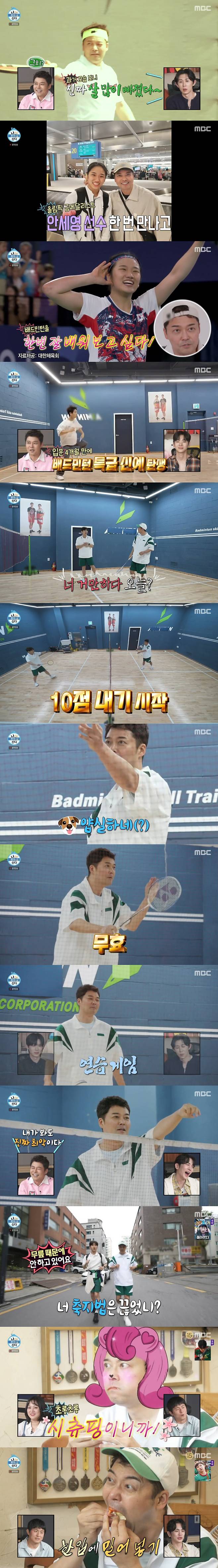 오전 7시, 배드민턴 채를 들고 외출에 나선 전현무. 그는 "안세영 선수 한번 만나고 경기를 보고 매료됐다. 기술적으로 배워보고 싶다는 생각을 했는데, 최근 어떤 분의 영향으로 배드민턴을 시작했다. 두달 짼데 한번 갔다. 등록하고 바로 후두염이 걸렸다"고 했다. 이후 전현무가 말한 선배는 바로 이주승이었다. 두 사람은 먼저 스트레칭 후 이주승 코치에 따라 그립 연습에 연중했다.