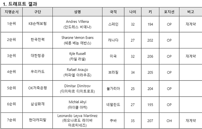 한국배구연맹(KOVO)은 9일(한국시간) 튀르키예 이스탄불의 월드엘리트호텔에서 외국인 선수 드래프트를 했다.