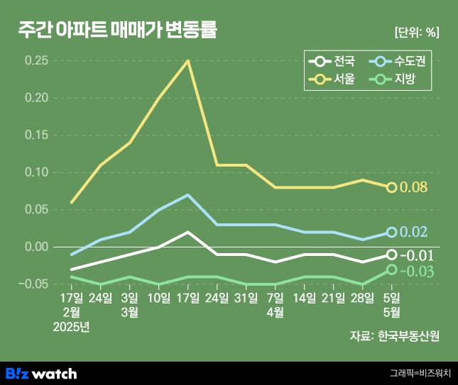 윤지해 부동산R114 리서치랩장은 "수요가 집중된 서울과 수도권이나 정책 호재가 있는 세종시는 상승 방향성이 뚜렷하게 확인되고 있다"면서도 "지방광역시와 기타 지방 일대는 강보합 수준이거나 하락 지역이 다수"라고 짚었어요.