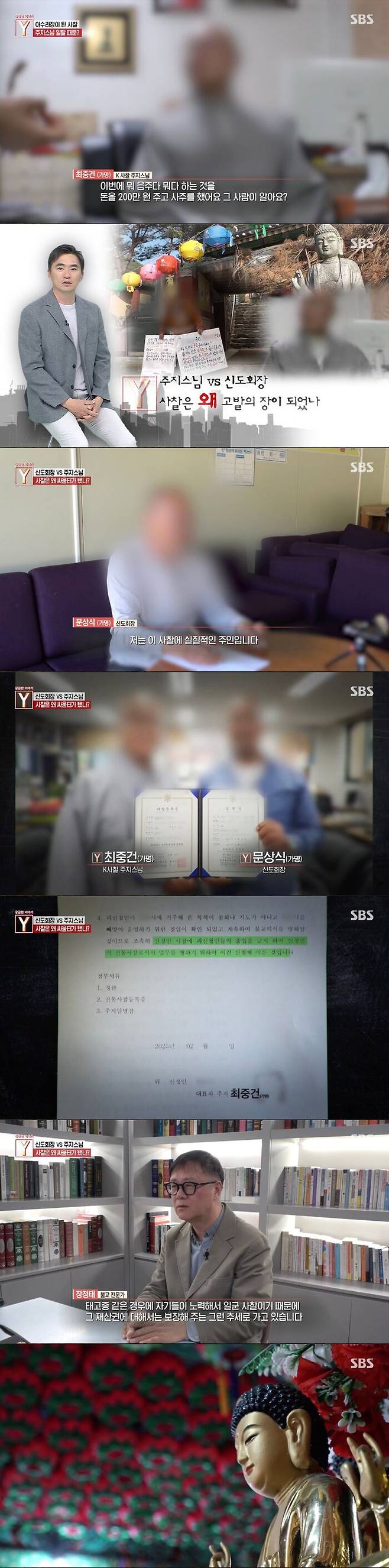 9일 방송된 SBS '궁금한 이야기 Y'에서는 전통 고찰에서 일어난 한 갈등을 추적했다.