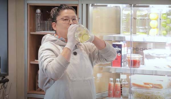 이날 영상에서 이영자는 요리를 시작하기에 앞서 음료 한 잔을 마셨다.