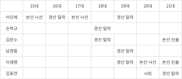 1997년 대선에 출마한 이인제 전 지사는 신한국당의 강력한 대선 주자였던 이회창 전 대표와 결선투표까지 가는 기염을 토했다. 하지만 득표율 60%를 기록한 이 전 대표의 벽은 높았다. 결국 당내 경선에서 낙선했지만 이 전 지사는 포기하지 않았다. ‘경선 불복’ 논란에도 불구하고 같은 해 9월 몸담고 있던 신한국당을 탈당해, 며칠 뒤 경기도지사직까지 던지며 독자적인 대권 가도에 돌입했다. 국민신당을 창당하고 제15대 대선에 출마했지만 19%를 득표해 3위에 그쳤다. 제16대 대선에서는 새천년민주당의 유력 후보로 주목받았지만 ‘노무현 돌풍’을 이기지 못하고 경선에서 고배를 마셨다.