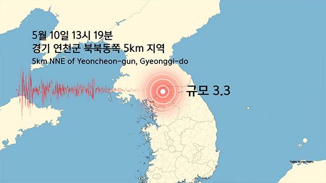 오늘(10일) 오후 1시 19분 쯤, 경기 연천군에서 규모 3.3의 지진이 발생했습니다.