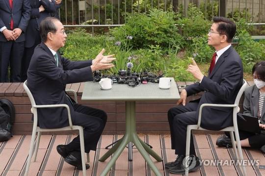 국민의힘 김문수 대선 후보와 한덕수 예비후보 측이 10일 7시께 단일화 협상을 진행했지만 40여분 만에 중단했다.
