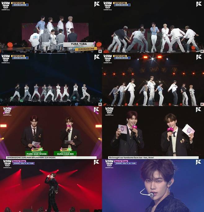 일본에서 공연이 진행된 만큼 제로베이스원은 ‘나우 오어 네버(NOW OR NEVER)’, ‘온리 원 스토리(Only One Story)’, ‘유라 유라(YURA YURA)’ 등 그간 일본에서 선보인 대표곡들을 현지 언어로 가창하며 뜨거운 호응을 이끌었다. 아홉 멤버는 경쾌하고 신나는 음악에 맞춰 에너제틱한 군무를 펼쳤다.