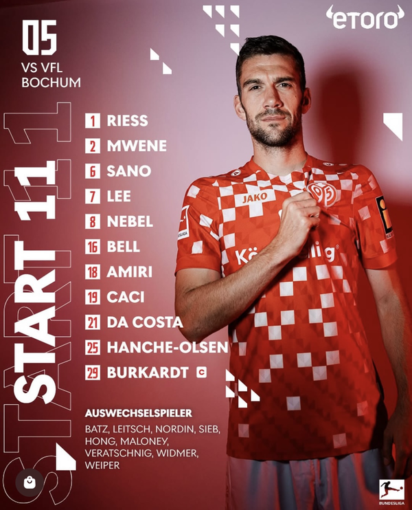마인츠는 3-4-2-1 포메이션을 가동했다. 부르카르트, 이재성, 네벨, 음웨네, 아미리, 사노, 카시, 핸슈-올센, 벨, 다 코스타, 리스가 선발 출격했다. 홍현석은 벤치에서 시작했다.