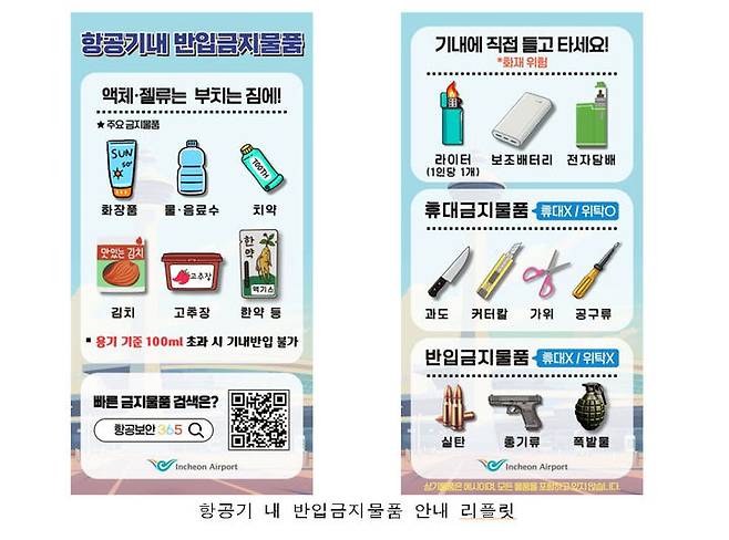 특히 국제민간항공기구(ICAO)도 항공사고 대비를 위해 지난 2007년 3월부터 용기기준 100㎖를 투명한 1리터 봉투에 넣을 수 있는 양에 한해 객실반입을 허용을 권고하고 있습니다. 우리나라도 ICAO의 권고에 따라 액체류 규제를 시행하고 있는데요.