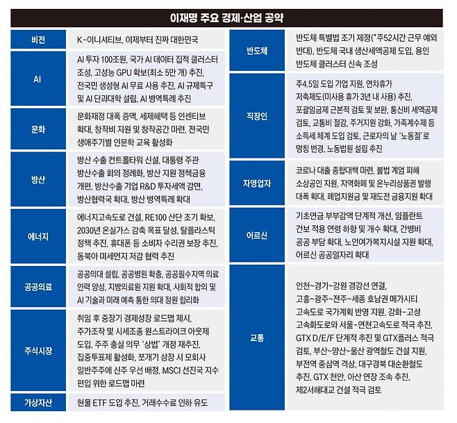 1번 타자는 단연 AI다. 박정희의 고속도로, 김대중의 인터넷망에 이어 이재명의 AI 인프라를 육성하겠다는 의지다. 수단은 ‘국가AI데이터센터’ 조성, 거점은 광주광역시다. 그는 최소 5만 장 이상의 최신형 AI 반도체(GPU)를 탑재한 초대형 센터를 만들어 AI 연구자·개발자·스타트업 누구나 쉽게 접근 가능한 인프라를 제공하겠다고 밝혔다. 이는 윤석열 정부가 2030년까지 추진하기로 한 ‘국가 AI 컴퓨팅 센터’의 5배 규모에 해당한다.